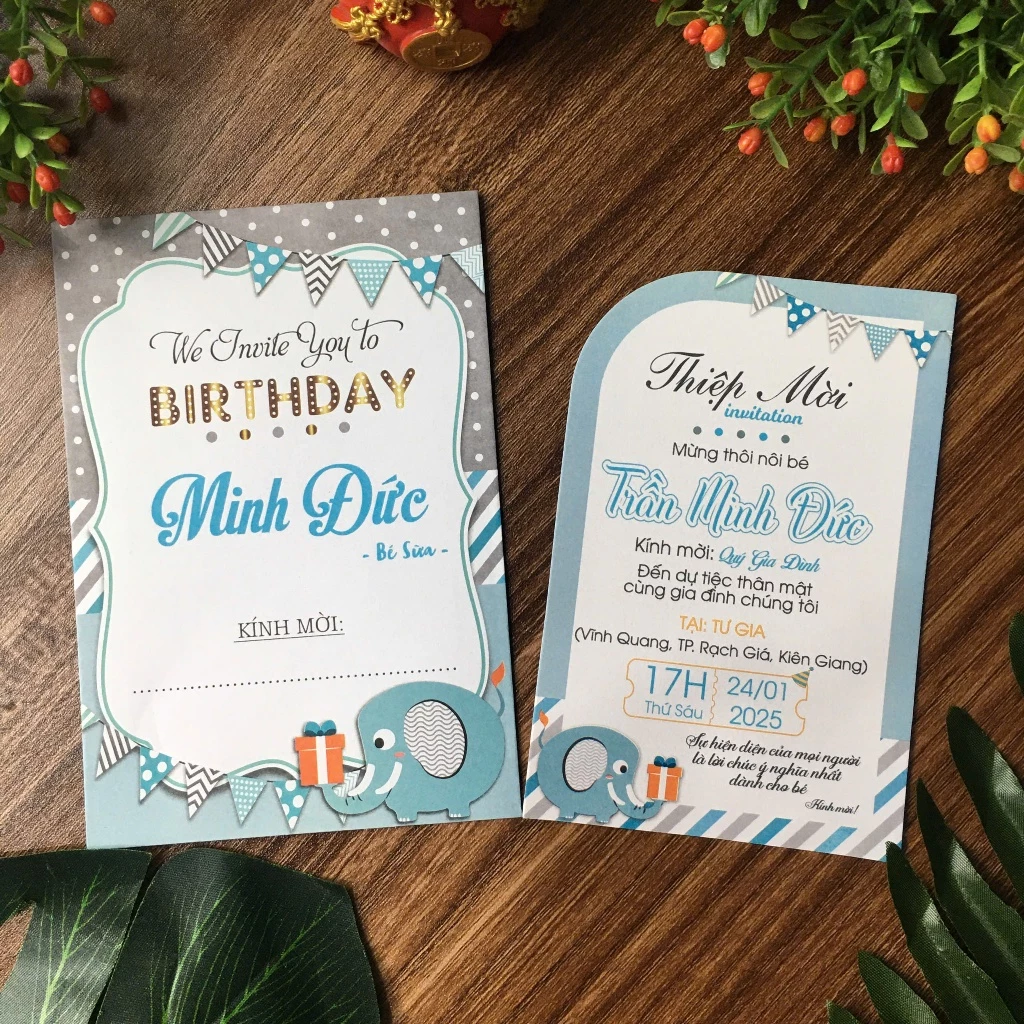 **Ba mẹ đặt hàng vui lòng nhắn thông tin in thiệp (Tên bé, ngày giờ và địa chỉ đãi tiệc) để shop lên mẫu xem trước khi duyệt**